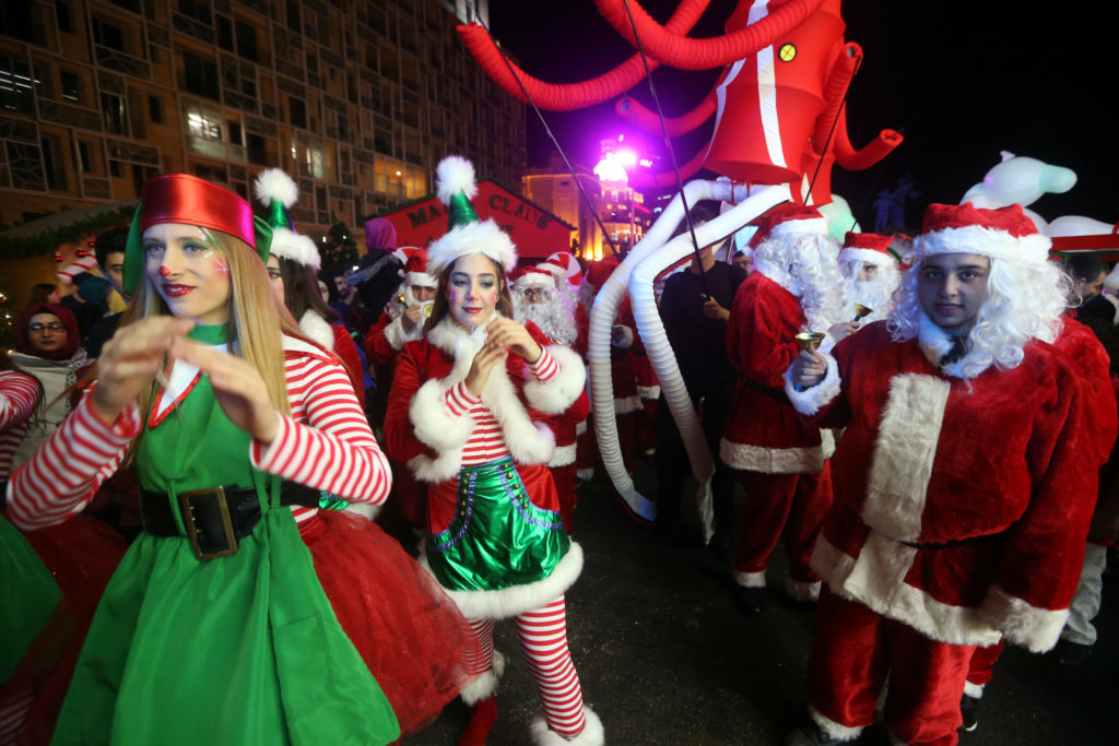 The competition in Lebanon’s major cities rises each year, as they go over the top with their beautiful Christmas decorations, attracting more visitors to enjoy the atmosphere. Before the opening ceremony of the Christmas festival, the municipal council of the city approved a project to decorate Beirut’s main streets for a month. The New Year’s Eve ceremony was held at Al Najmah Square in downtown Beirut; about 100,000 people attended the event. Many children accompanied their families to the opening ceremony, which was opened with a fireworks display.