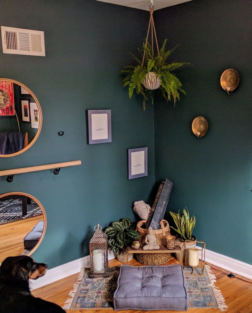 Pimp your spot with a mandala tapestry, some plants, a few candles, and of course, your yoga mat.
