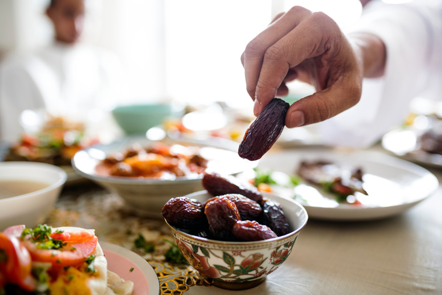 The perfect way to break your fasting routine is to have something light on your first breakfast after Ramadan. Something like muesli topped with honey or fruits for example, or simply start with dates to balance your blood sugar levels.
