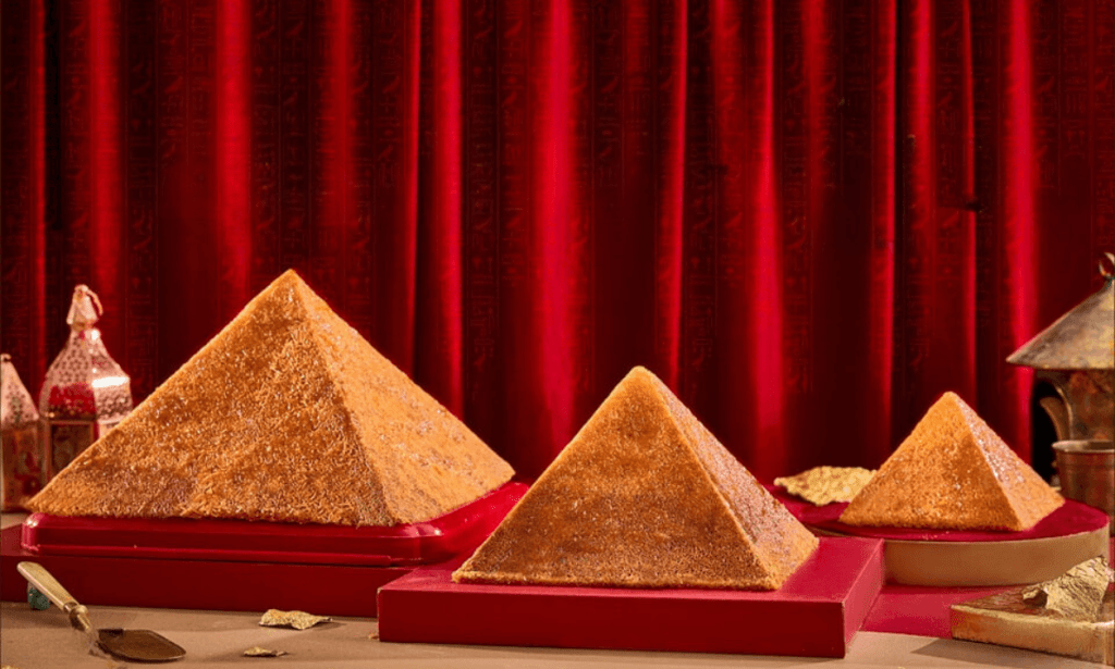 We all know that you must be wondering what’s hidden inside the Konafa Pyramids. Well, inside each one are all-time favorite fillings, from pistachio and chocolate to mango. Of course, El Malky has to add its touch of creativity, so they decided to fill one of the pyramids with fig toffee. You’ve got to keep things local.