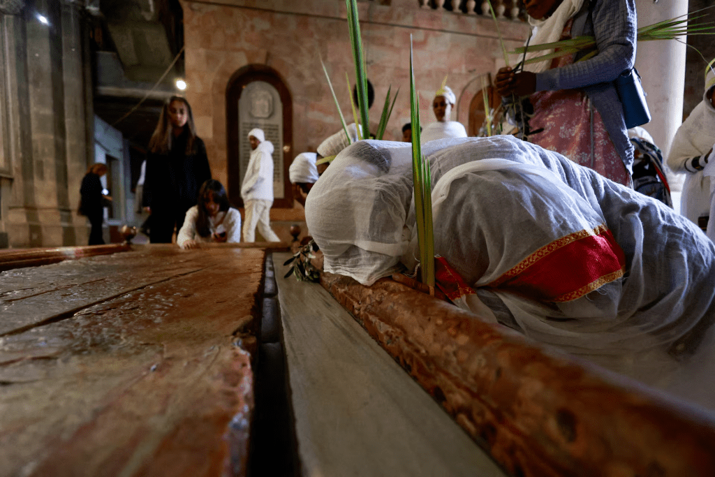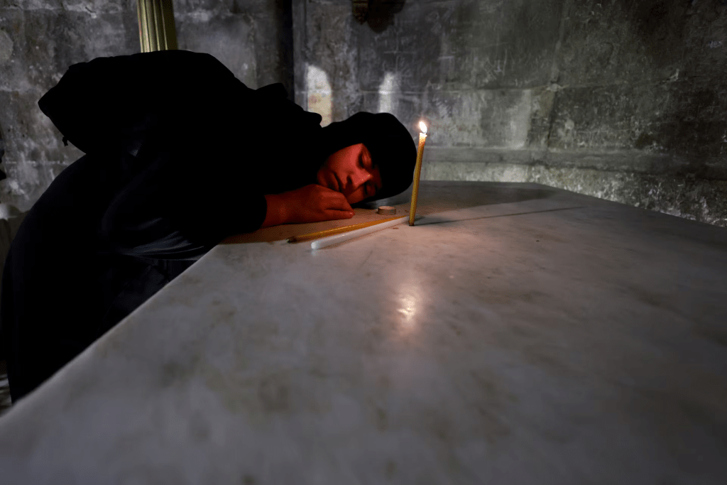 Christian worshippers stood in silence at the place believed to hold the story of crucifixion, burial, and resurrection. Their faces showed grief, devotion, and something deeper — a kind of spiritual connection that transcends time.