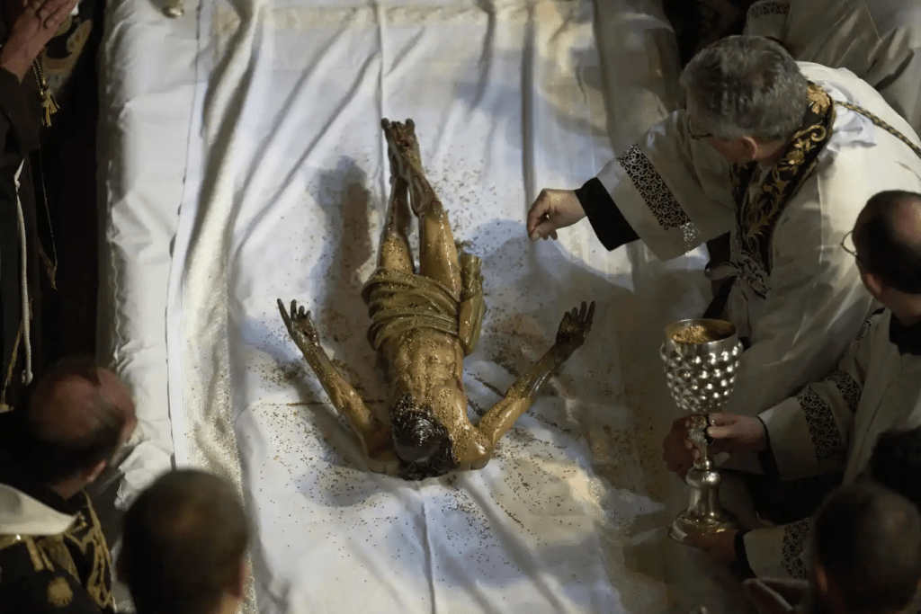 On Sad Friday, Catholic clergymen gathered to reenact the funeral of Jesus. The ceremony, held at the very site where he is believed to have been buried, was a moving tribute.