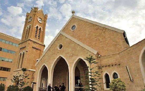 Also located in Beirut, the National Evangelical Church is a Protestant church, established in 1848 as the first native Arabic Protestant congregation in the Middle East. During the war only the clock tower survived; the church itself was rebuilt in 1998.