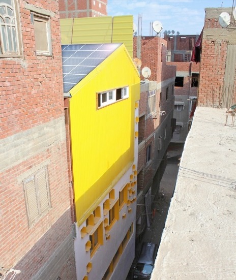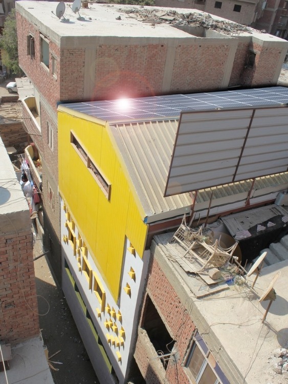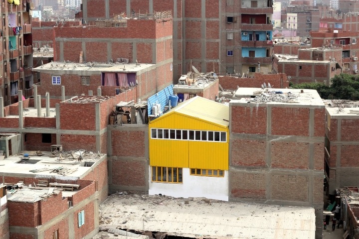 Ezbet Khairallah is a very densely populated settlement in the Fustat District in Cairo, with clusters of similarly-colored buildings stuck next to each other, so spotting a bright yellow building is quite easy.