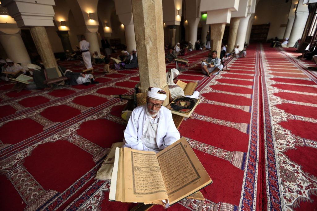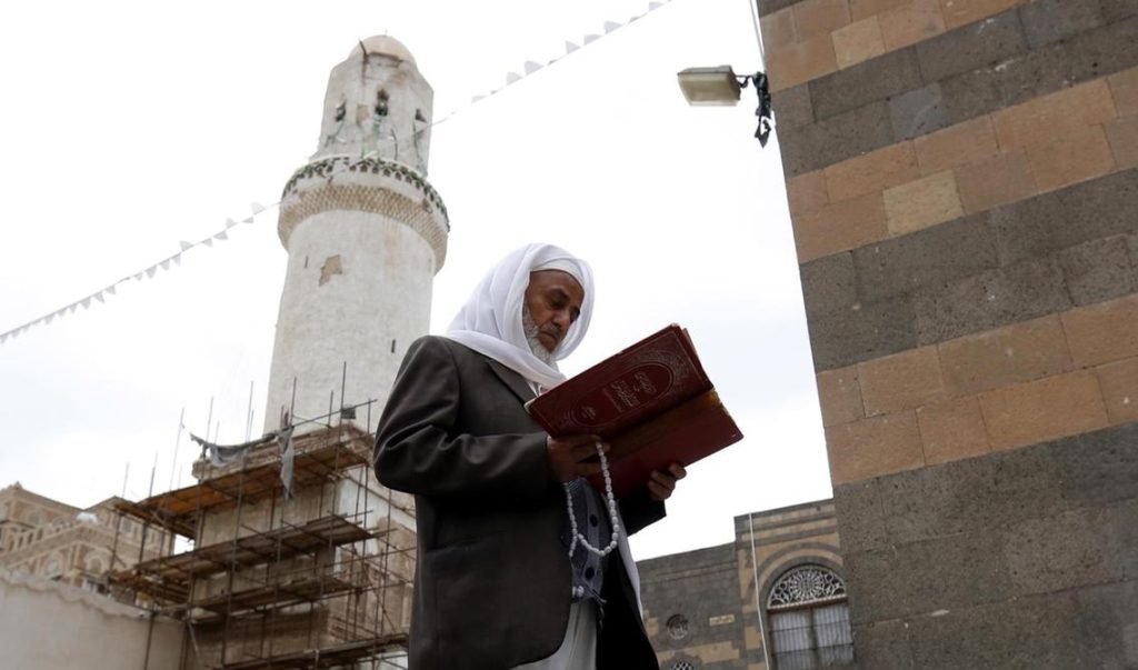 Yemeni man reads Quarn at a mosque, San’a, Yemen. Via The National.
