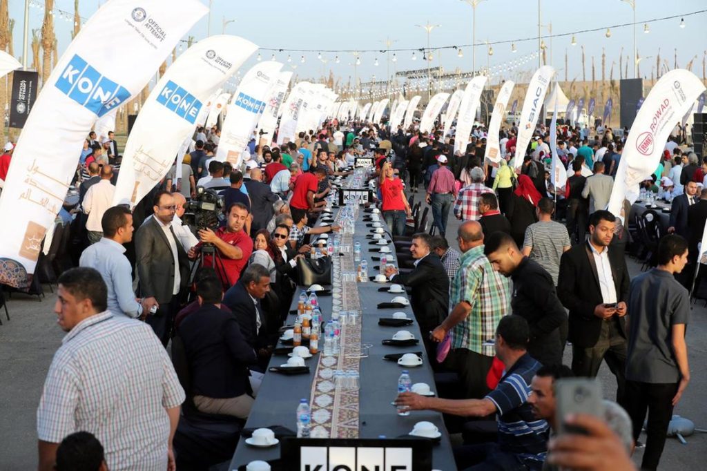 Egyptians at an attempt to break the Guinness World Record for longest table at Iftar, New Administrative Capital, Egypt. Via The National.