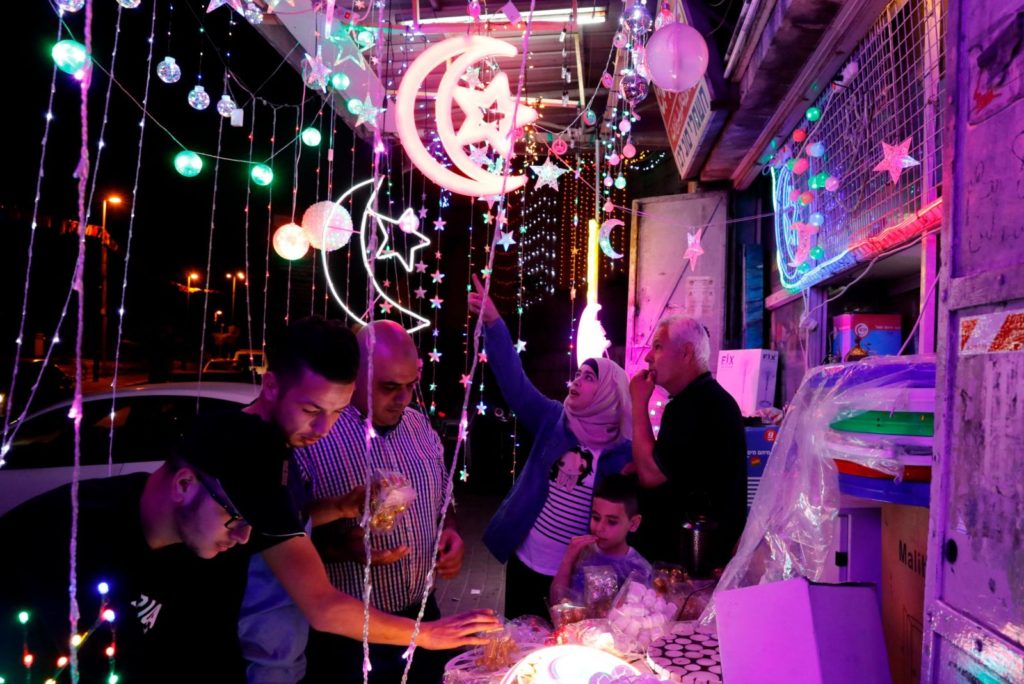 Palestinian family stops by a shop selling Ramadan decoration lights in the old city of Jerusalem, Jerusalem, Palestine. Via CNN.
