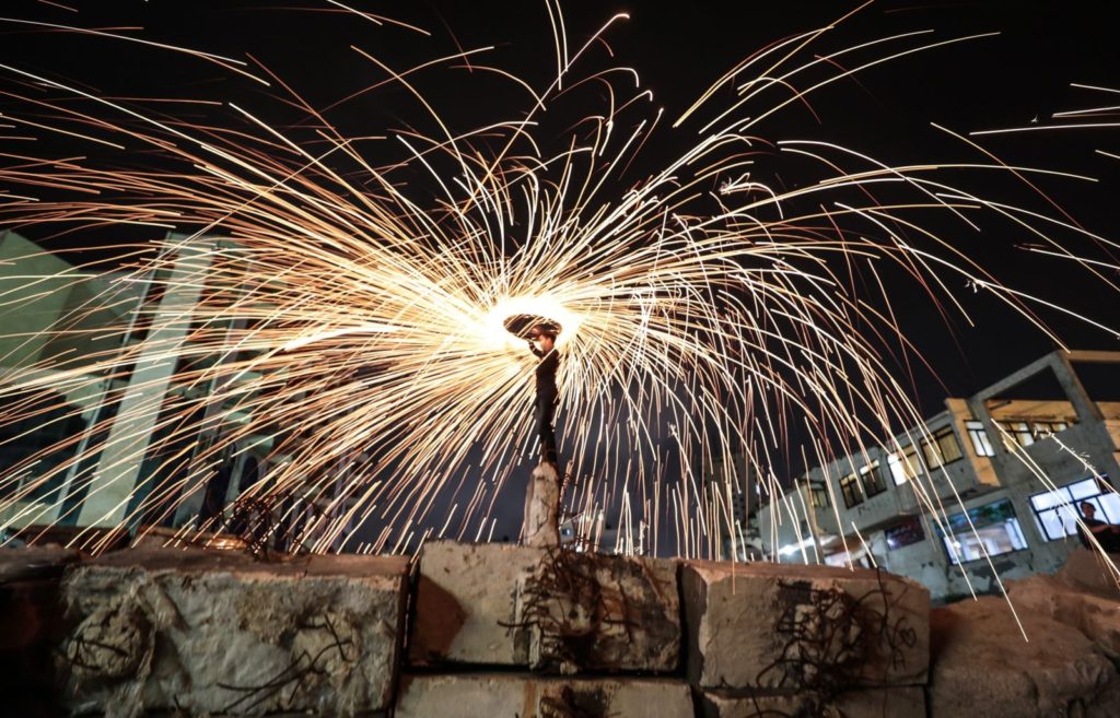 Palestinian youth plays with fireworks, Ghaza, Palestine. Via CNN.