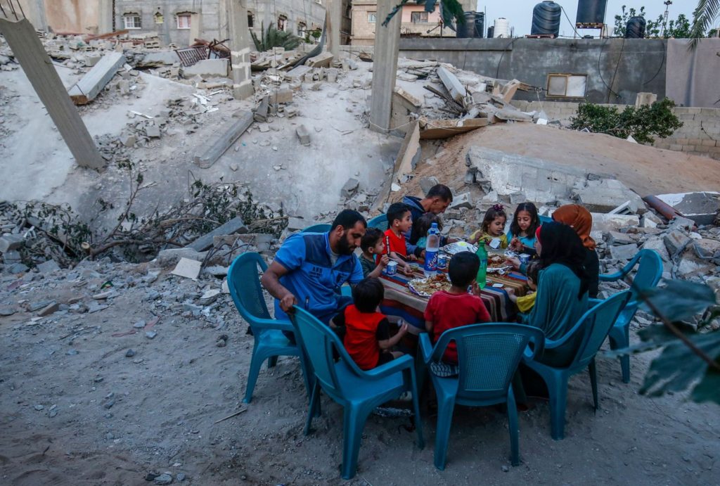 Palestinian family break their fast next to their home, which was destroyed in the recent conflict between Hamas and Israel. Via CNN.