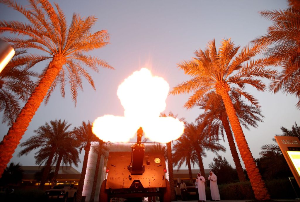 A UAE policeman fires a cannon salute as a signal for the end of the fasting day of Ramadan at Umm Al Emarat Park, Abu Dhabi, the United Arab Emirates Via CNN.