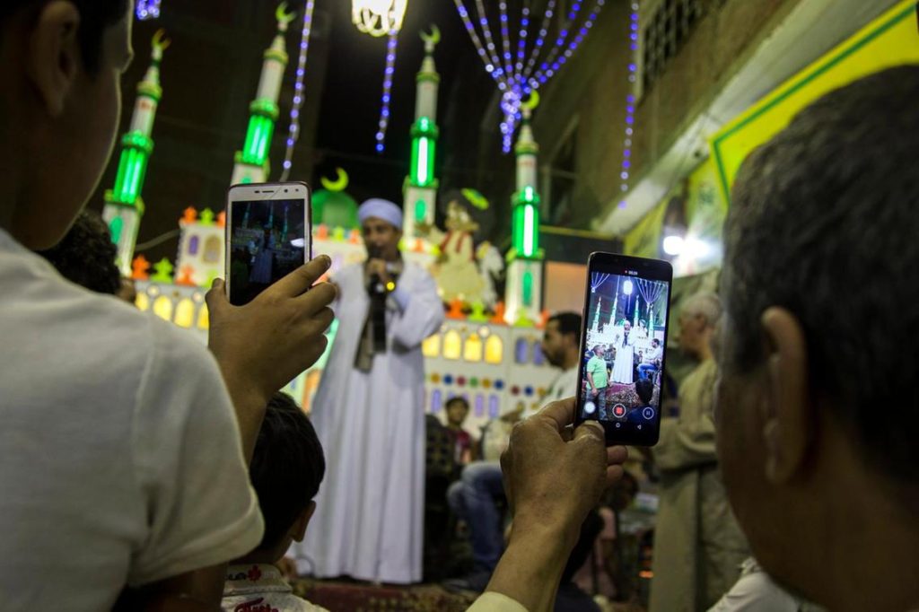 People filming a performance of a man singing Islamic songs, Cairo, Egypt. Via The National.