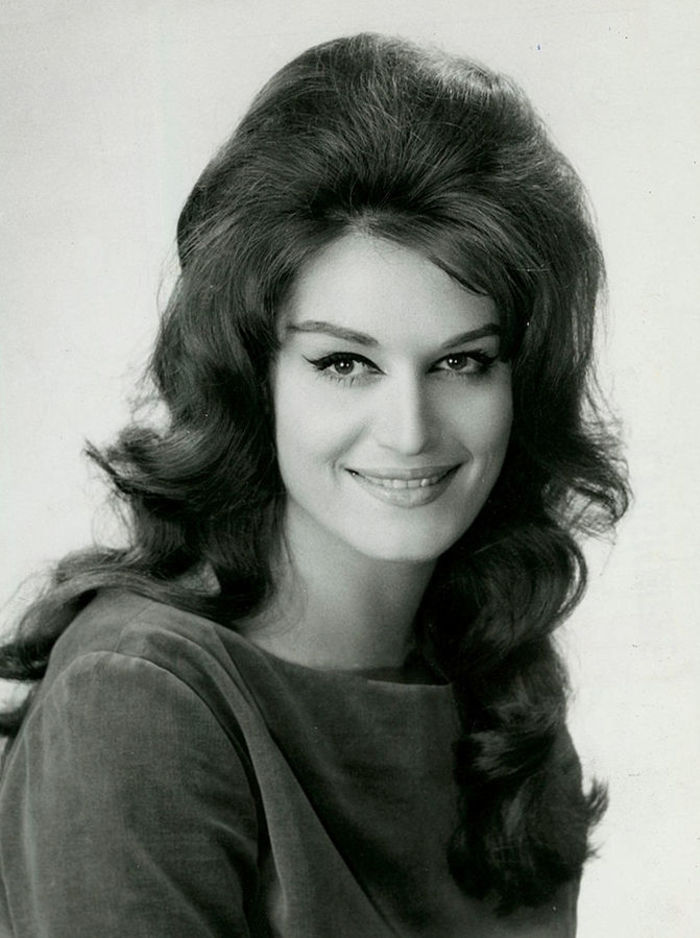 Dalida, like many other celebrities back then, used to do sprayed low updos with a little tease to it to add this extra puff on the top, leaving the rest of the hair slimmed down with small curls.