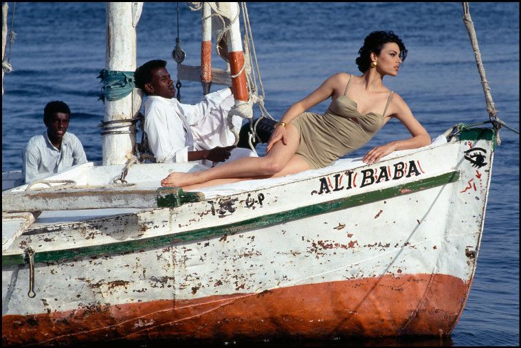 The brilliant photographer Ferdinando Scianna and Italian beauty Gisele Zelahui took to the streets of Egypt in 1992 for a breathtaking fashion photoshoot that we still admire today. Scianna definitely took the photoshoot to the next level; the combination of Gisele’s natural Italian beauty while wearing high-fashion with Egypt’s prominent landmarks like the Pyramids or a boat in Aswan is what made it so glamorous and special.
