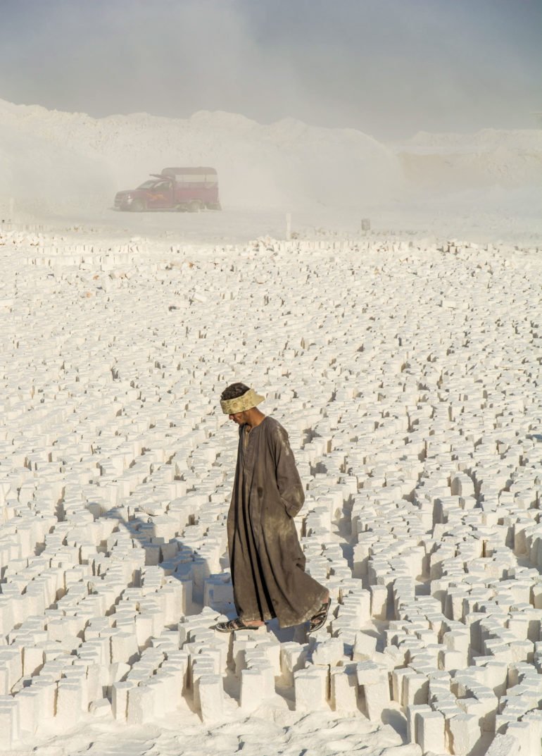 Kamal, a Freelance Photographer specialized in documentary and daily life photography, took these pictures in a remote location in the Minya Governorate of Upper Egypt. There, workers extract white bricks from the mountainside; many of them are prone to respiratory diseases because of the work environment.