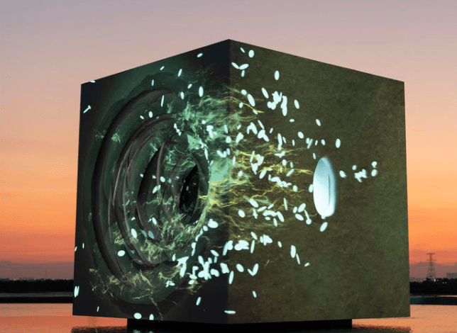 Jubail Island, Abu Dhbai just installed a new breathtaking addition to its area; a display of kinetic sculpture nestled in the new beach area “The Seed”. Devised by creative director Es Devlin in collaboration with a team of Emirati creatives, the futuristic cube-shaped moving piece of art is showcasing the evolution of a beautiful seed throughout its various stages of life while using light and sound effects.