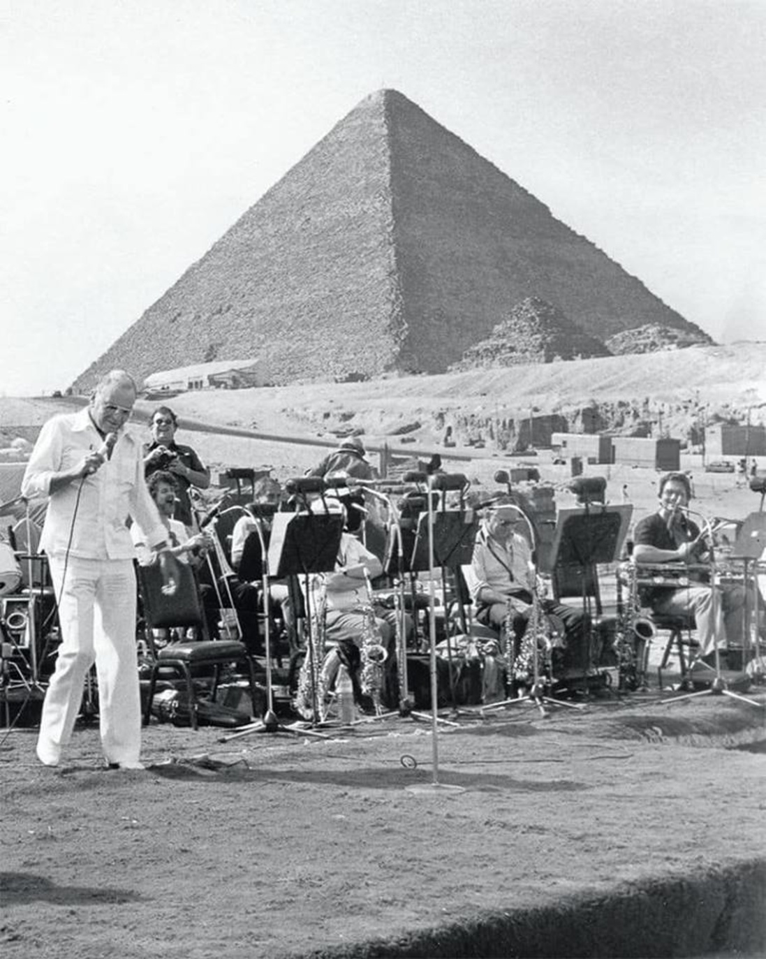 Sinatra performed a classic set on September 27, 1979, which included “Someone to Watch Over Me,” “I’ve Got You Under My Skin,” and “Strangers in the Night.” The US press sent some journalists to document the event, and it was reported that Sinatra was his usual charming self on stage, even cracking a few jokes. According to The Washington Post, during the performance, Sinatra expressed his amazement about the Pyramids behind him and made a quip about his Italian heritage.