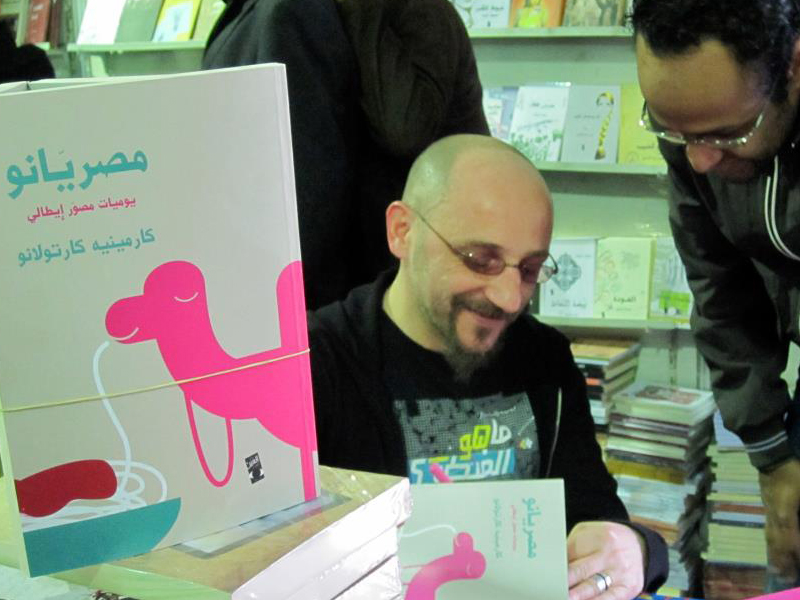 During his stay in Egypt, Cartolano found the writer inside of him by coincidence. It all happened because of a friend who found his blog posts funny and suggested he’d start writing in Arabic. As he received positive feedback on his Arabic translations, he decided he had to write something from scratch. That’s when “Masriyano”, his first book, was born. His second book, Momo, soon came after. Momo’s story-line is about an Italian who illegally travels to Egypt. In his book, Cartolano raised the issue of illegal immigration as he believes it’s one of two highly crucial matters. That’s why he swapped the common situation where an Egyptian would like to flee the country illegally; to Italy for instance, and turned it the other way around. The other crucial issue he also discussed in his book was the sexual harassment taboo.