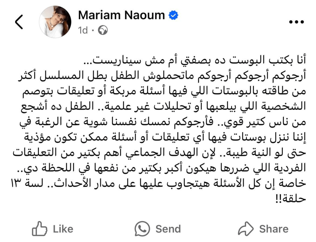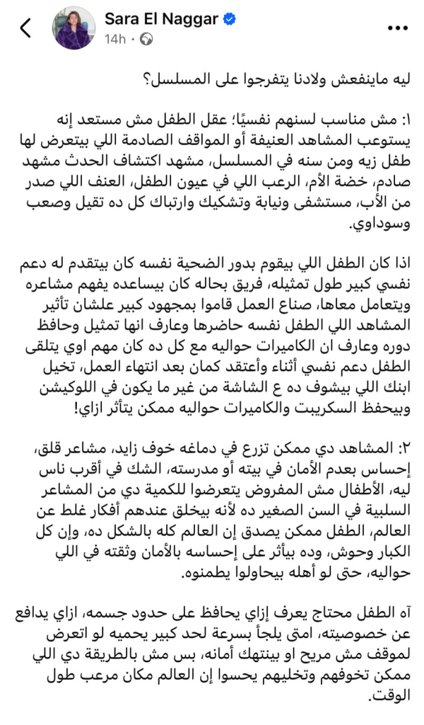She was present on set during all difficult scenes, ensuring Ali felt safe and supported. It’s rare for Egyptian productions to prioritize child protection in this way, and director Karim El-Shenawy deserves huge credit for making it a priority.