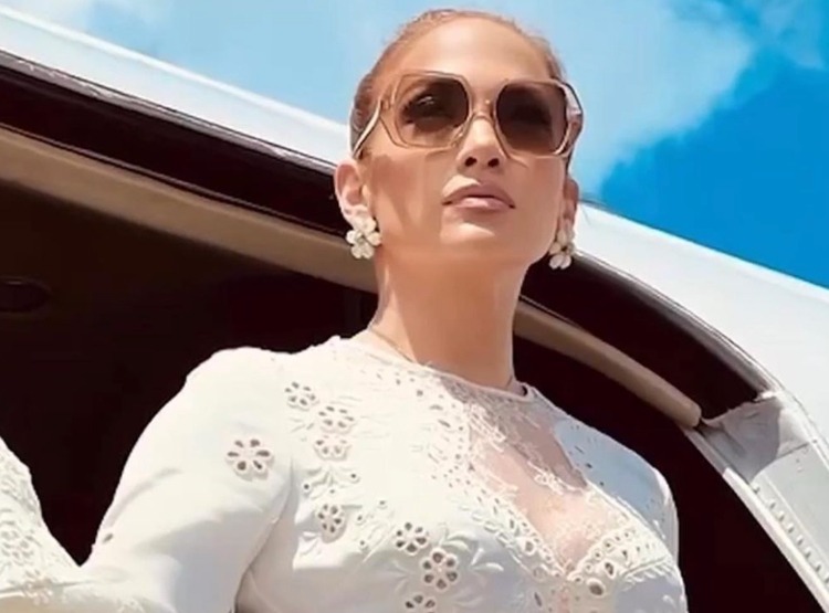 Lopez wore an angelic white dress with floral detail in addition to bold sunglasses also by the Lebanese designer with the final detail of having her hair pulled in a neat bun, giving the sleek look that much power.