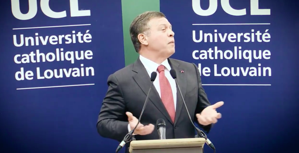 During a royal visit to Belgium, HM King Abdullah II of Jordan gave a speech at Université Catholique de Louvain addressing the ongoing Syrian refugee crisis.