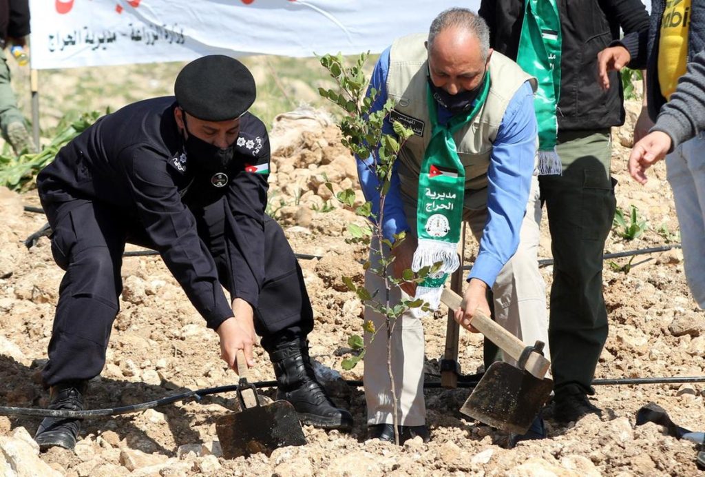 The Minister of Agriculture, Mohamed Daoudia, joined volunteers in their reforestation efforts near the forest of Kufranjah, north of Amman.