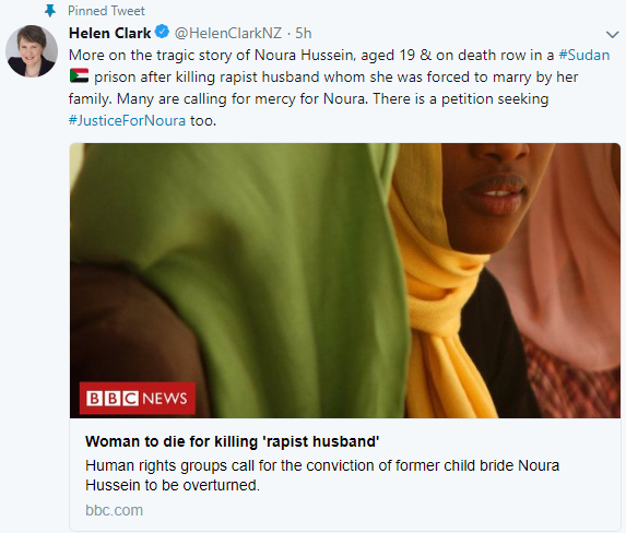 After Noura’s wedding, she alleges that a number of men, her husband’s relatives, entered her home, asked why she was rejecting intercourse with her husband and then held her down as he raped her. As he tried to rape her again the next day, Noura stabbed him to death. As Marital Rape is not recognized as a crime in Sudan, the young girl was sentenced to death. The family of her husband declined financial compensation and therefore asked for her to be executed.