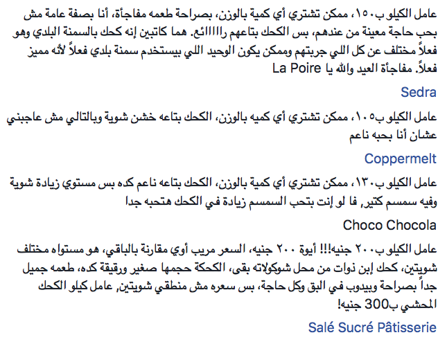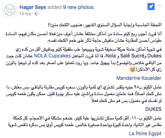 Facebook page, Hagar Says, just posted an exquisite comparison between the market’s most anticipated kahk. She decided to buy 250 grams of kahk from each store — stores likes NOLA, Sale Sucre and Dukes only had full packaged kilos so she had to dismiss them. I want Hagar to be my best friend and organize my life.