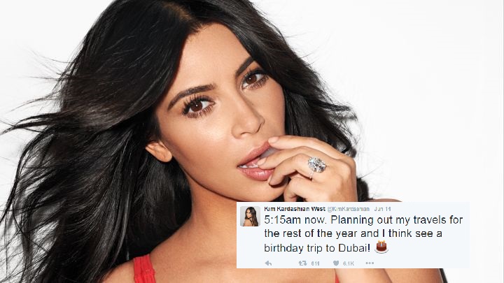 The reality megastar tweeted out to her fans that she’s planning a birthday trip to Dubai, saying: