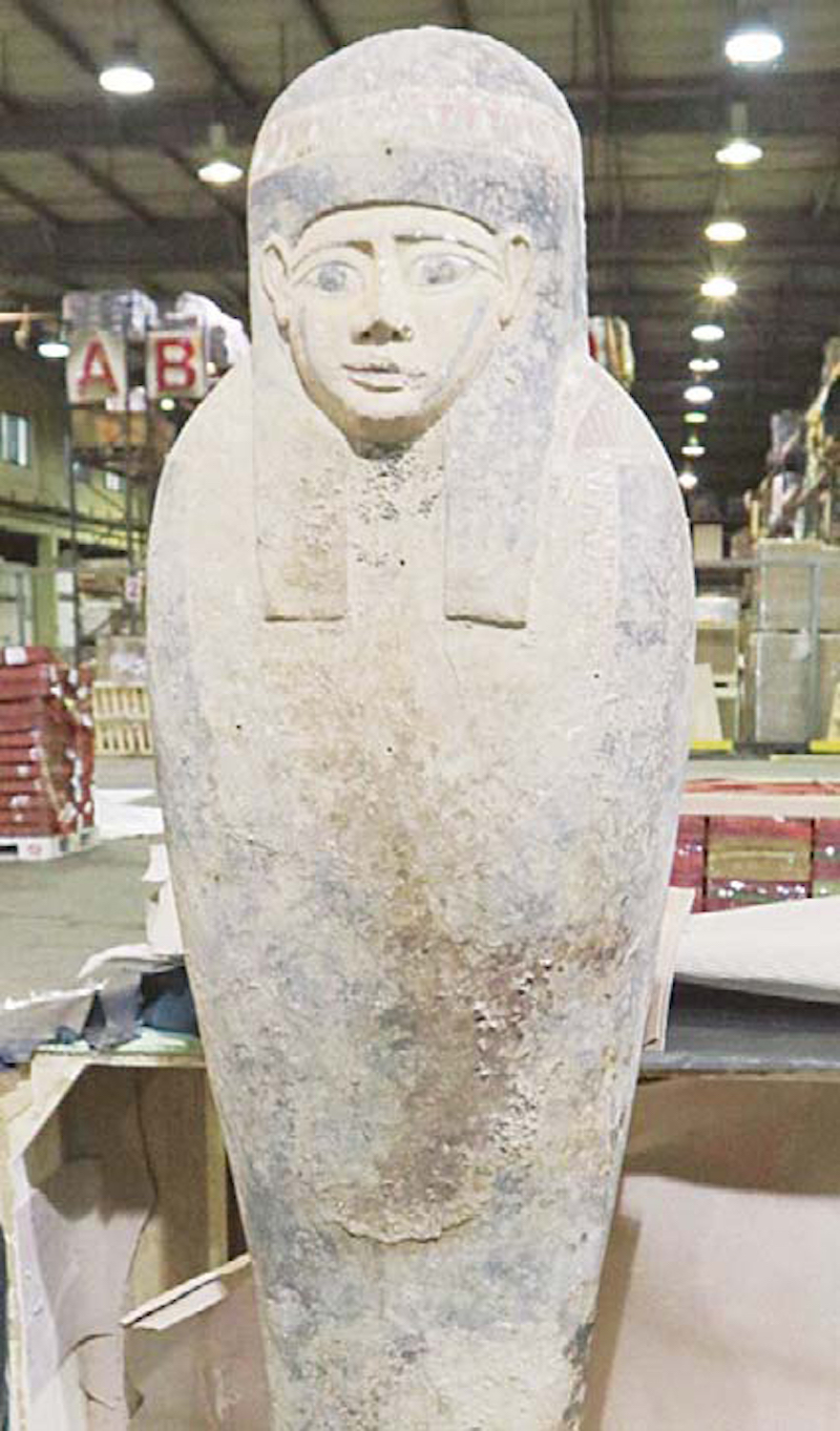 A coffin lid artifact was smuggled to Kuwait earlier this month from Egypt and was discovered hidden in a sofa that was shipped by a certified shipping company. Officers at the Kuwait Airways cargo terminal discovered the artifact as they were scanning the shipment.