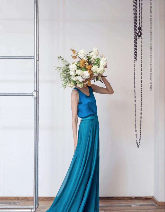 This was interpreted with flowy fabrics with lots of volume and the color palette resembled the color tones of human skin, ranging from pink hues and orange colors.
