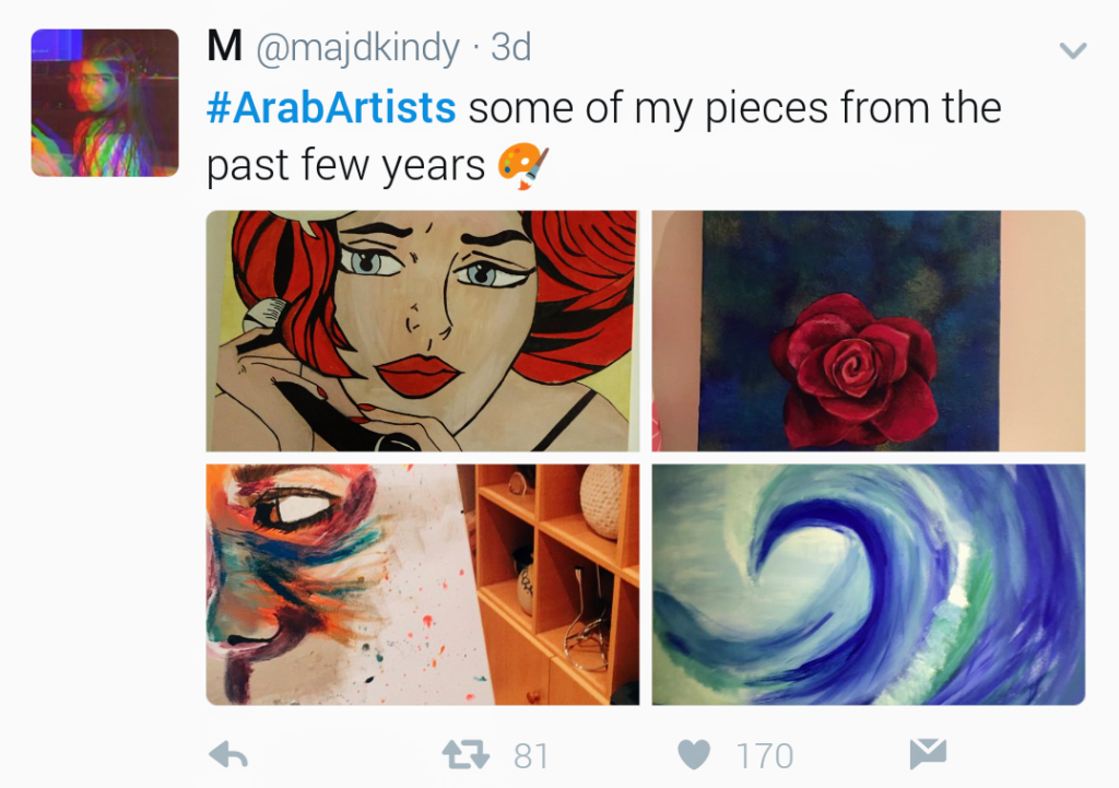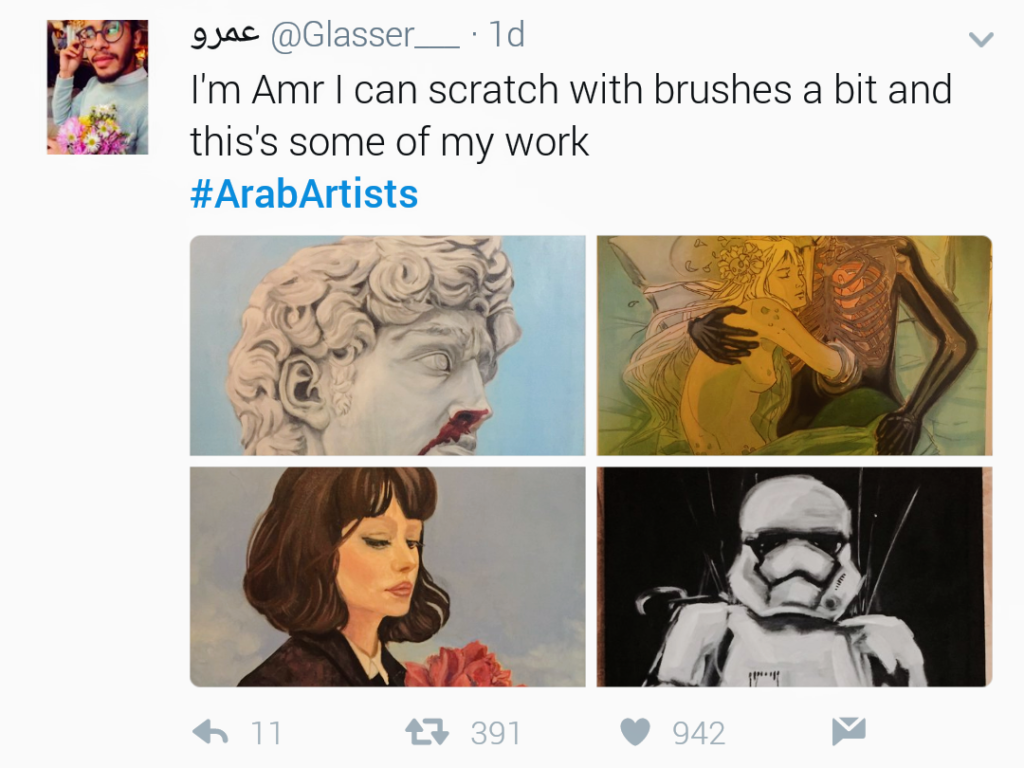 The #ArabArtists has been a hot and trending hashtag on Twitter, for the past couple of days. The purpose behind the hashtag was to utilize the popular social media platform in order to compile the works of some of the region’s artists, and to have them introduce themselves to the online world.