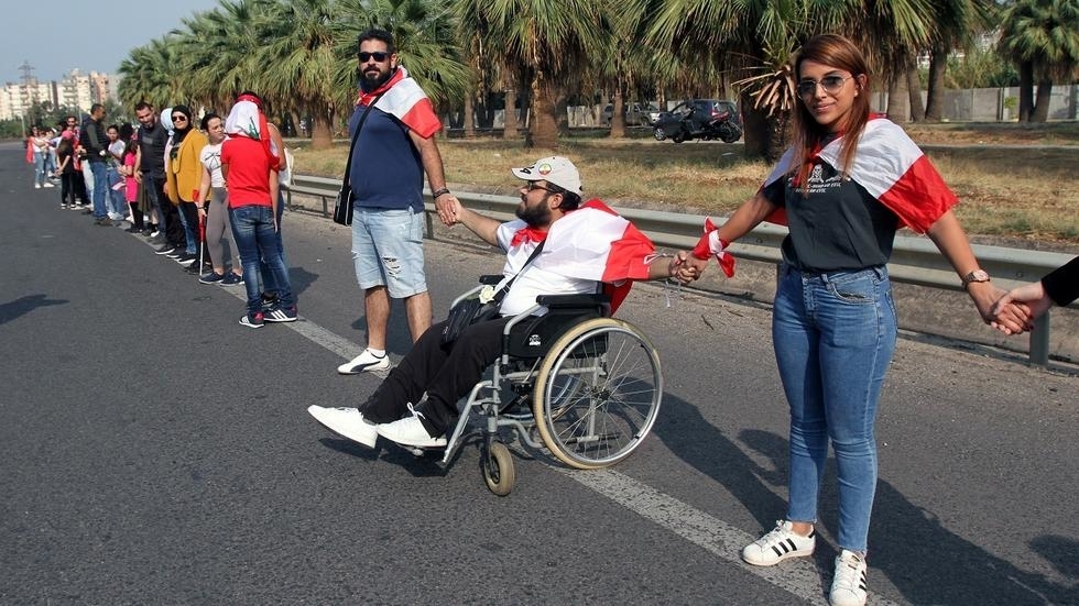Participants began joining hands in the early afternoon, and by 4 P.M. Beirut time, the chain was complete.