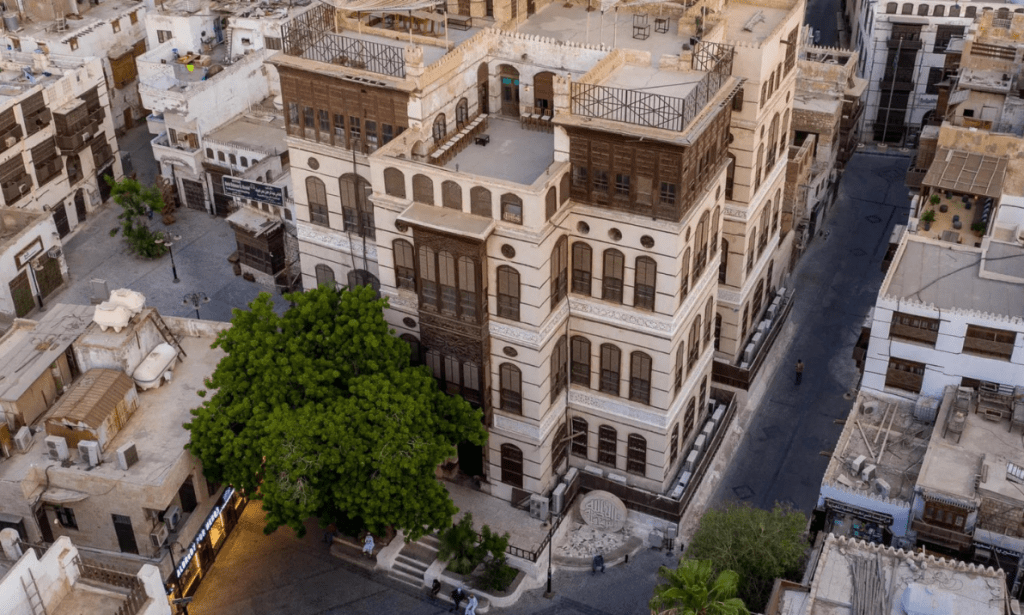 In the beating heart of the city is its oldest neighborhood, El Balad, a weaving labyrinth of walkways containing Saudi’s history exemplified through its well-preserved architecture of the ancient homes. While walking through El Balad, take in the architectural elements around you from the wooden latticed window coverings to the varied paint colors of the buildings.