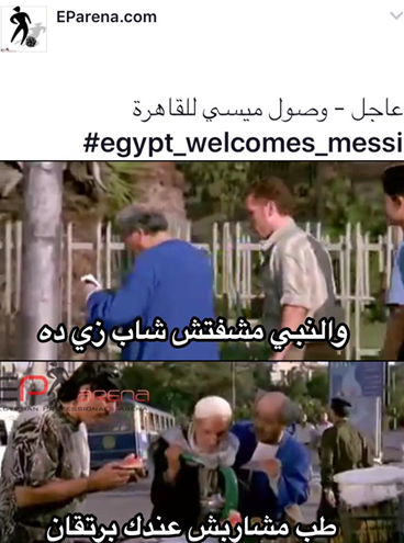 Argentinian professional footballer Lionel Messi visited Egypt yesterday, and because we’re Egyptians we made sure we joke about it! With memes becoming the new joking platform, Twitter and Facebook were flooded with Messi memes. We decided to pick our favorite moments from his trip and report them through memes.
