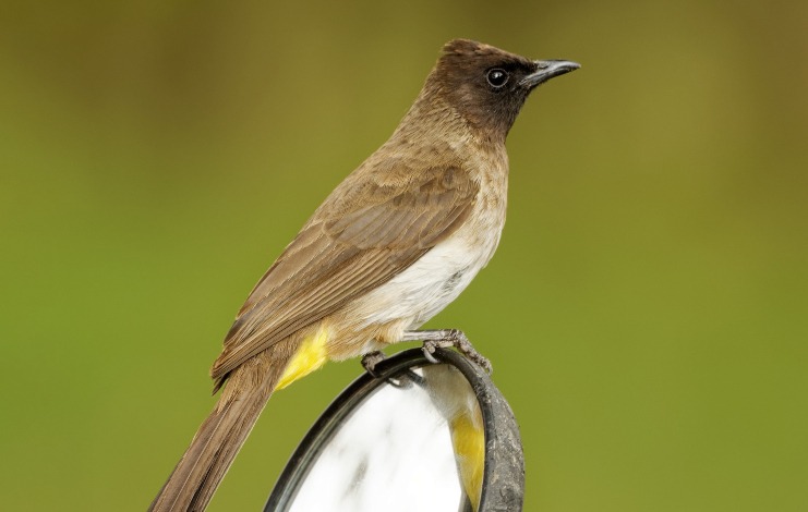 Also known as the Common Bulbul and sometimes the Sahel Garden Bulbul, it’s a small bird, which has a white belly, yellow bottom tip, brown body, and a darker brown head. The Bulbul loves trees, that’s why birdwatchers will often find it in gardens, backyards, and wooded areas near bodies of water.
