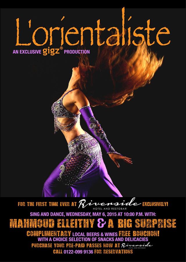 Zamalek’s newest Riverside Hotel is proud to present “L’Orientaliste”, an exclusive Gigz production featuring Mahmoud Elleithy and a special surprise on May 6, 2015 at 10pm. For anyone looking for a classy night full of singing, dancing and getting spoiled at a luxury hotel, this event is for you.