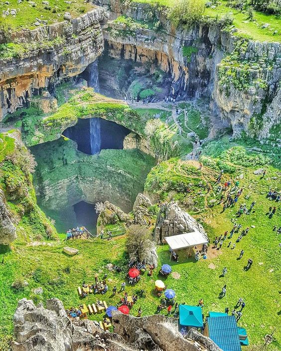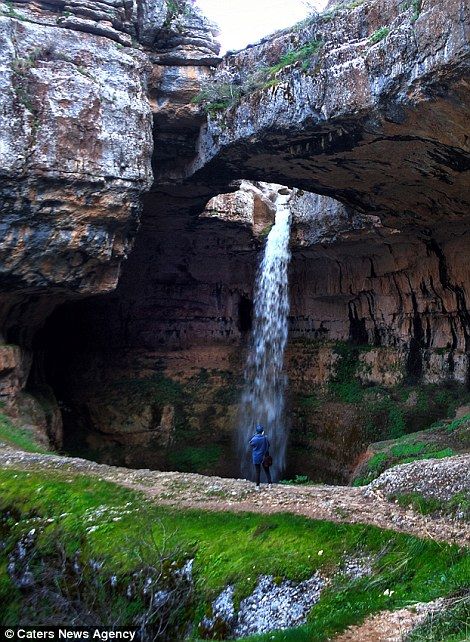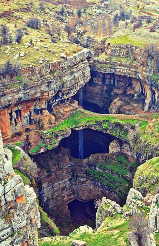 The waterfall is located in the village of Balaa, between the cities of Laqlouq and Tannourine. This Baatara Gorge Waterfall drops 255 metres into a cave of Jurassic limestone and it is best seen during the months of March and April after the snow has melted.