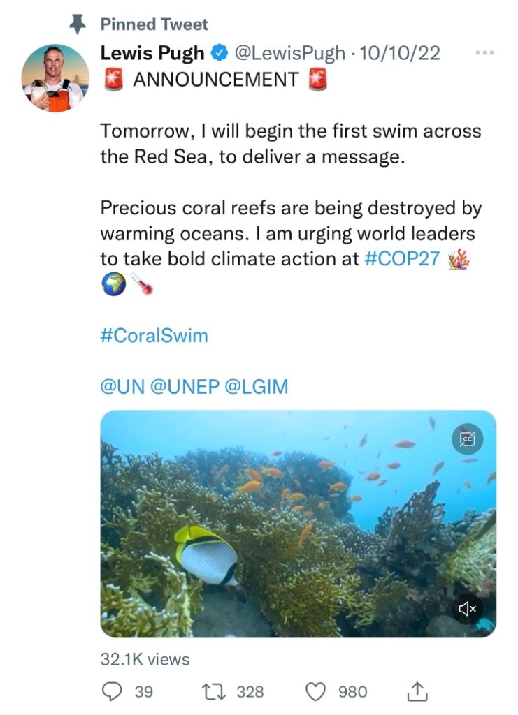 The arduous swim was not completed to merely break records. During the swim, Binalden was joined by endurance swimmer Lewis Pugh who took to Twitter to share the bigger message behind the lengthy swim: