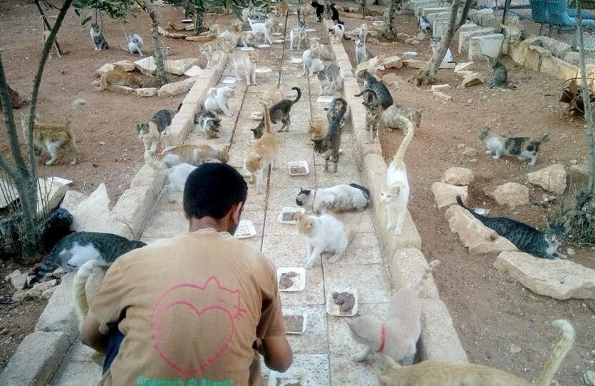 These cats are not always found abandoned, sometimes people approach Al-Jaleel knowing that he is the best keeper for their cherished pets and leave them in safe hands just before the flee to another country seeking refuge.