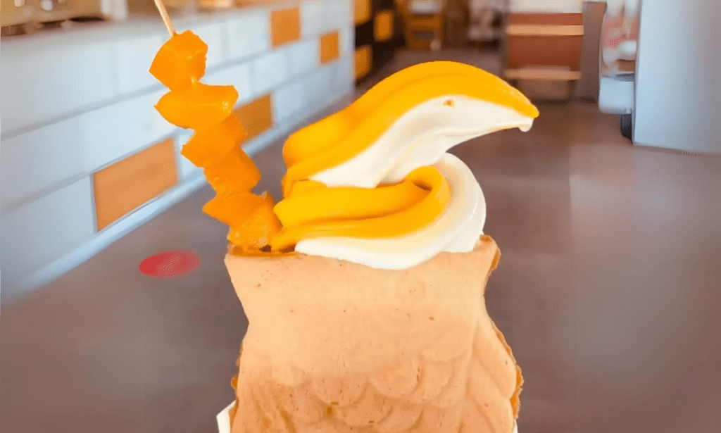 For anyone who is a fan of Japanese desserts, you will probably have heard of taiyaki, a fish shaped pancake usually filled with red bean paste. Seeing how we are diving into the world of mangoes, we want to introduce to you a delicious mango version of the dessert: taiyaki with mango ice cream.