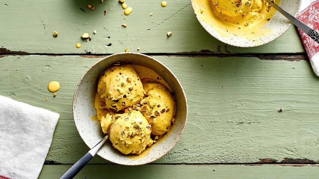 This delicious dessert comes originally from Persia. It’s made of eggs, sugar, rose water, vanilla, pistachio, milk, and saffron. Fun fact: during the Persian empire, Bastani used to be sweetened with honey, and chilled in snow.