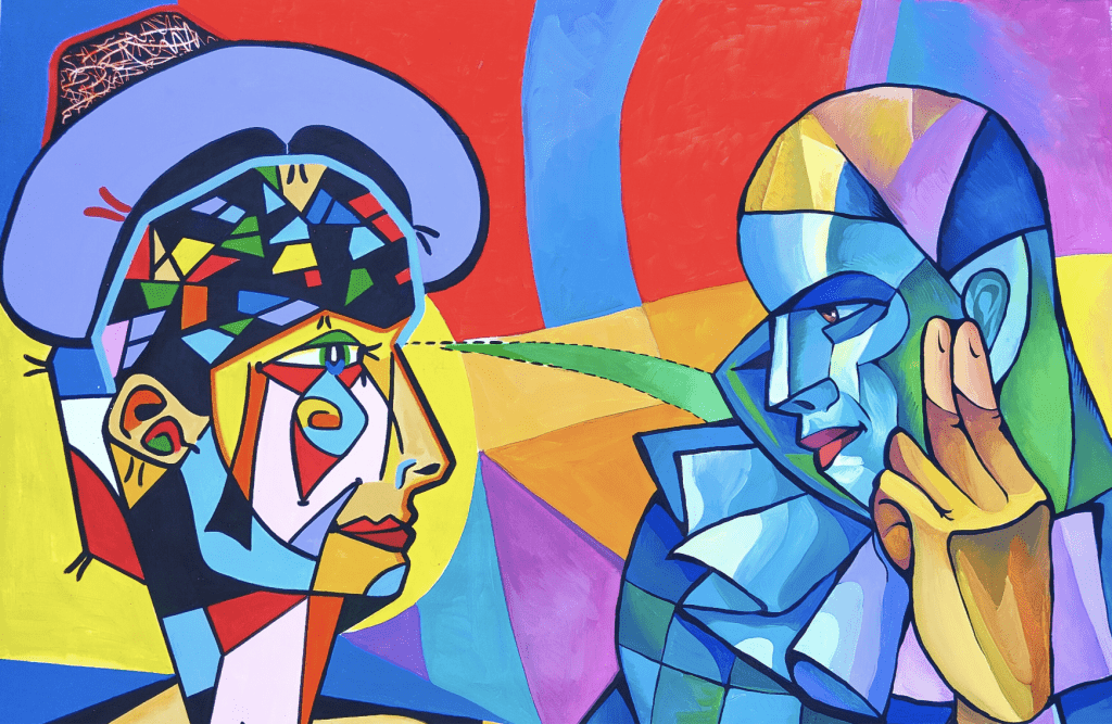Zafi believes that It is through this exceptional artistic collaboration that one becomes aware of the beauty and power of art, stating “art is sharing without borders.” The collaboration features strikingly vivid colors and intriguing details, with all the paintings showcasing cubist human forms.