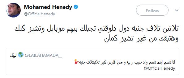 The actor took to his Twitter account to rant about how stupidly expensive everything is in Egypt — something every Egyptian has been vocal about. Henedy retweeted a tweet from one of his followers with a reply that should honestly be eternalized forever. “All I want is 30,000 LE,” the original tweet from his follower said. The comedic God wasn’t there for it, which is why he replied with: “The only thing you can get with 30,000 LE right now is a smartphone, and a cheesecake, without the cheese.”