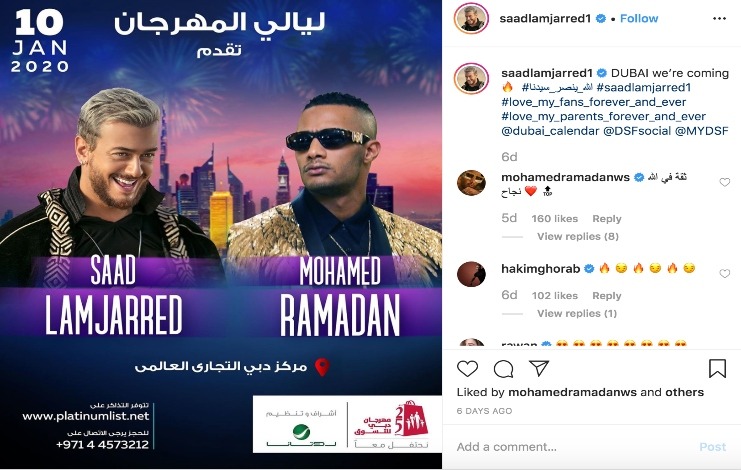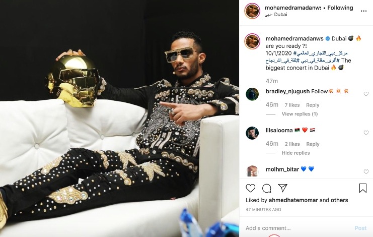 Ramadan uploaded a video on his Instagram account, thanking the Ruler of Dubai and the concert organizers, and later posted an image of himself with a caption for the audience, saying “Dubai are you ready?”.