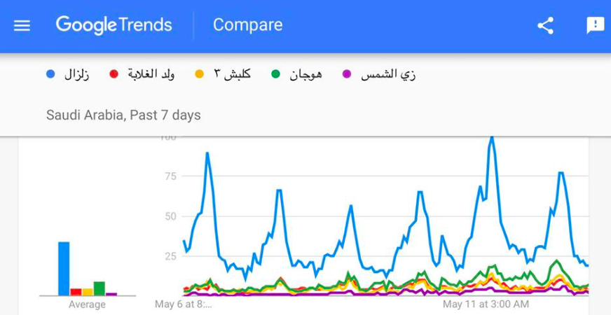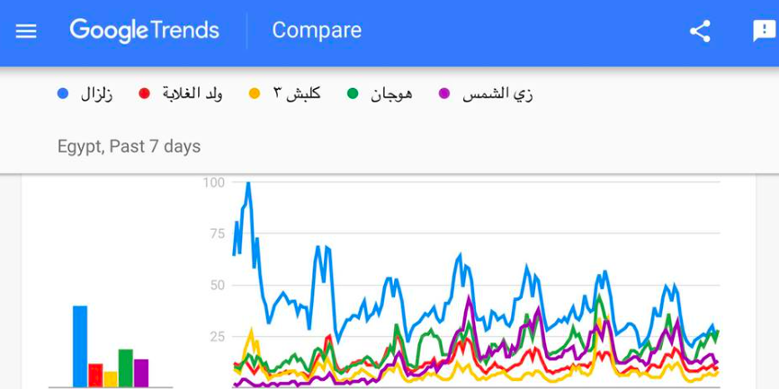 It all started with the first week Google trends where Zilzal’s views skyrocketed way above Zai El-Shams, Hogan,