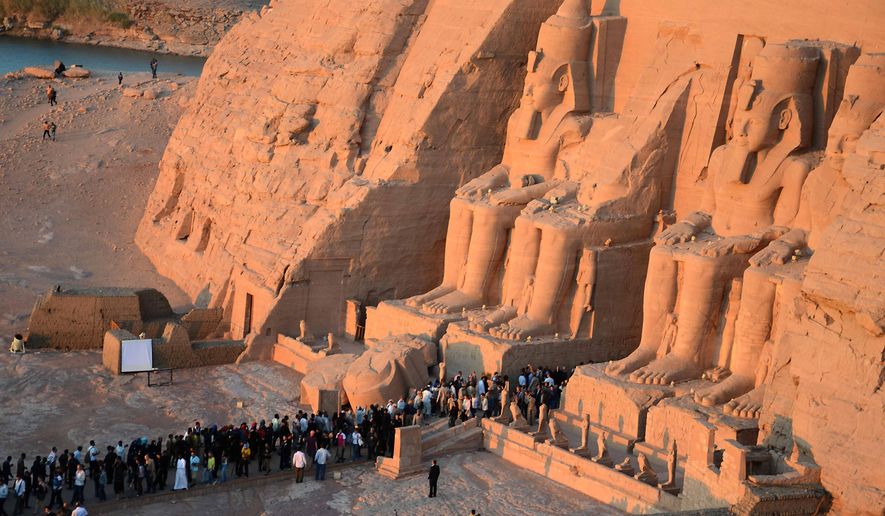 On the 22nd of February, the birth date of the late Egyptian pharaoh, and again on the 22nd of October, his coronation, the rays of the sun illuminate three of four statuses situated at the top of the temple’s interior, each of which is 22.5 meters in height.