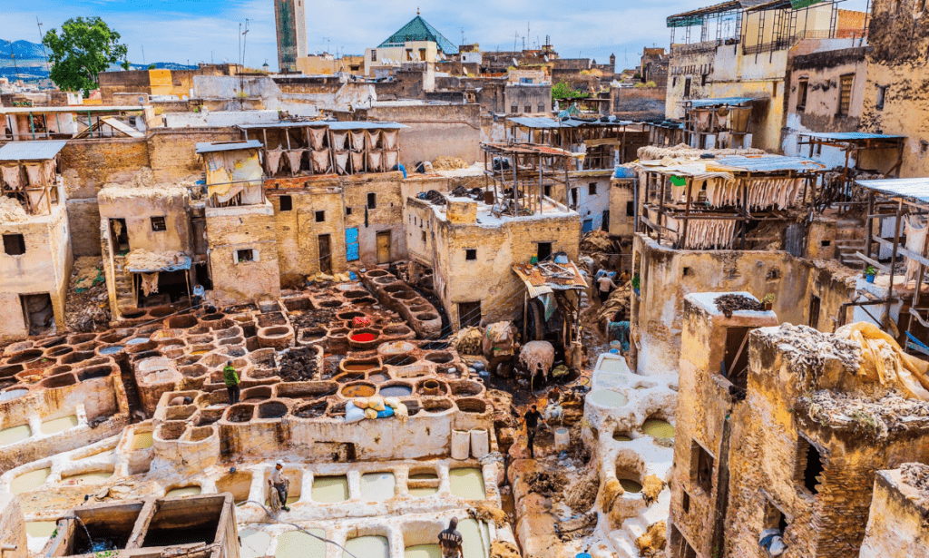 Visiting Fez is like stepping back in time. Within its bustling Medina, you’ll witness traditional craftsmanship and visit tanneries where leather is dyed using age-old techniques.