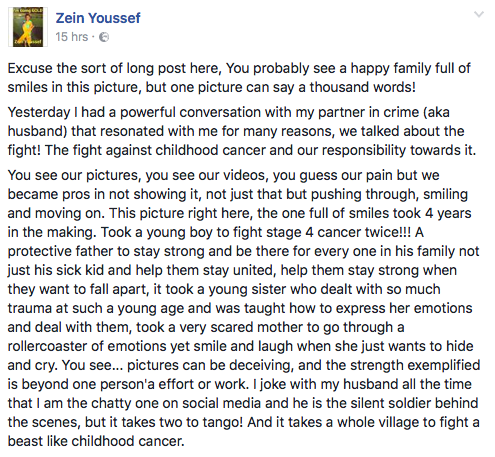 For days, everyone has been waiting for Zein’s scan results, thankfully the results were positive with no trace of the tumor. But the mother decided to share the truth behind the positive photos and smiles. The real battle the whole family is fighting. The little sister who has to deal with emotions way beyond her age. The silent father who is the real warrior putting on a brave face. This post is so honest, heart-breaking and inspirational for everyone fighting any kind of battle.
