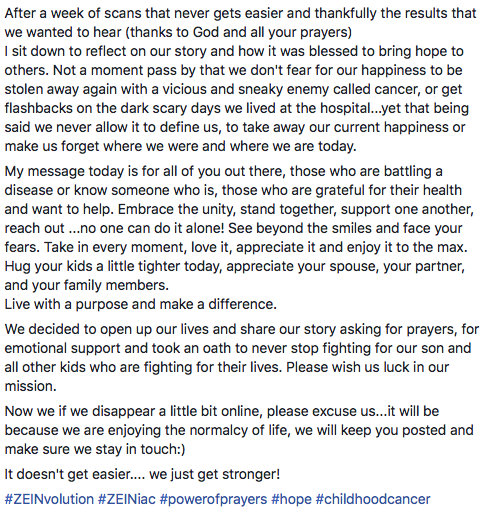 While you might not understand why a parent would publicly discuss such a private matter, you have to understand that there are thousands out there going through the same ordeal, and Zein’s journey could give them hope and comfort in knowing that they are not alone. Yet out of all the family’s posts, this must be the one that hit me the hardest.