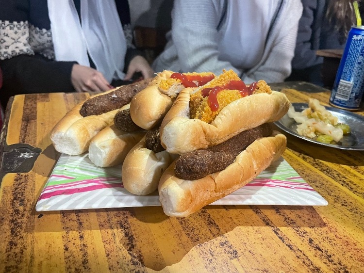 After spending more than an hour since we made our order, the food finally arrived. Thirteen liver sandwiches, eight sausage sandwiches and two chicken pane sandwiches, a literal tower of food arrived at our table. At that significant moment of truth, we were all met with a unanimous feeling of disappointment. Not only was the liver extremely dry with barely any flavor, the sausage sandwich turned out to be more of a sausage puree, a texture that surprised and annoyed many of us. The only upside was that the food was decently priced with the liver sandwiches costing 12 EGP while the sausage and chicken pane sandwiches costing 15 EGP.